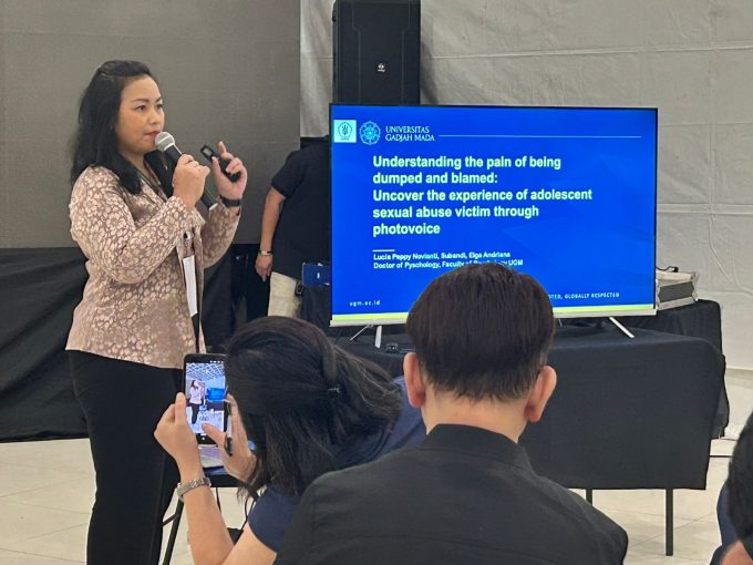 Dalam kesempatan tersebut, Peppy mempresentasikan hasil risetnya yang berjudul “Understanding the pain of being dumped and blamed: Uncover the experience of adolescent sexual abusive victim through photovoice.”